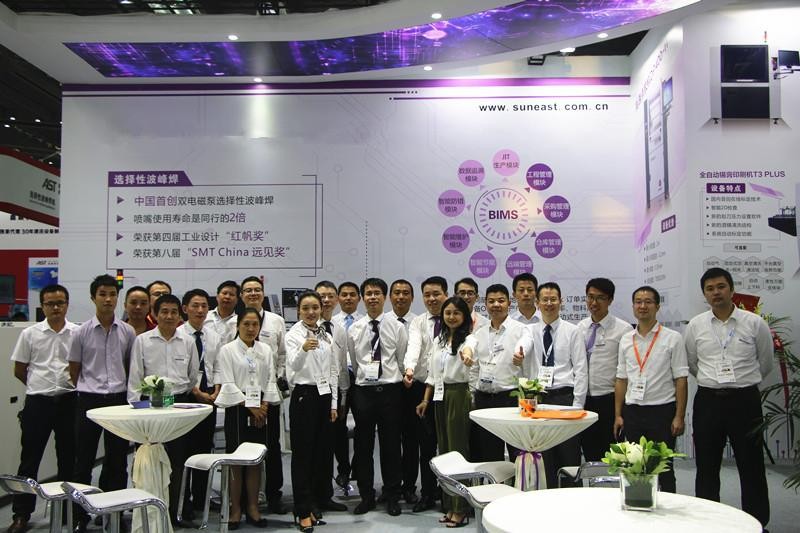 日東科技作為智能化裝備的龍頭企業,攜雙泵選擇性波峰焊、BIMS智能制造管理系統、回流爐、波峰焊、印刷機、點膠機亮相NEPCONSouthChina2017,并在展會上向大家展示了我們的三款新品:選擇性波峰焊SUNFLOWDS、回流爐SER-708A雙軌及垂直回流爐SVR-300,獲得了前來觀展觀眾的一致好評。