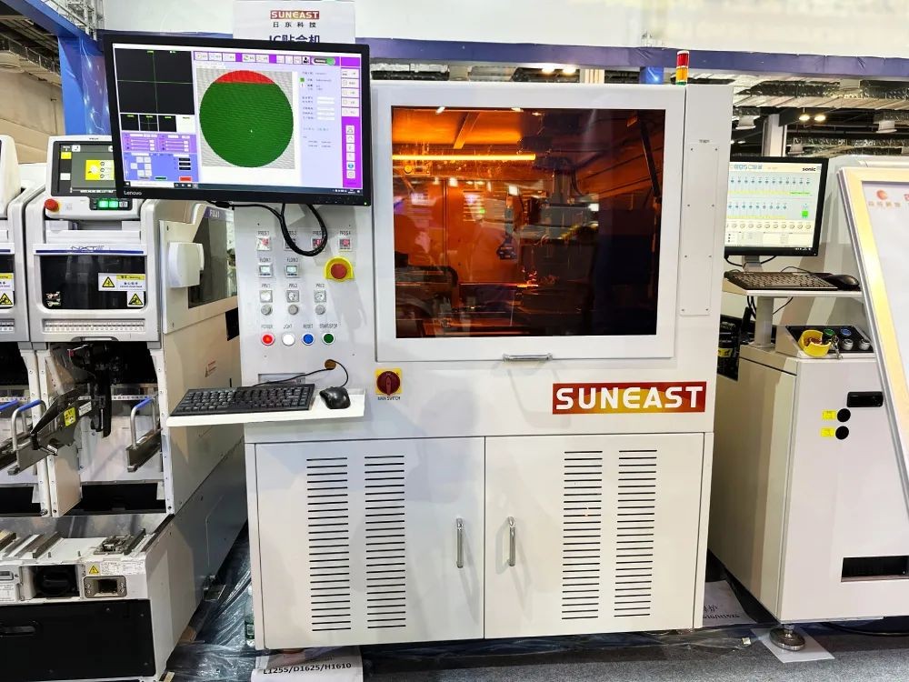 日東IC貼合機在展會精心打造的“SiP 及先進封裝生產示范展示線”上精彩亮相,設備以高精度、高效率、高穩定性的特點吸引了觀眾駐足觀看、了解。