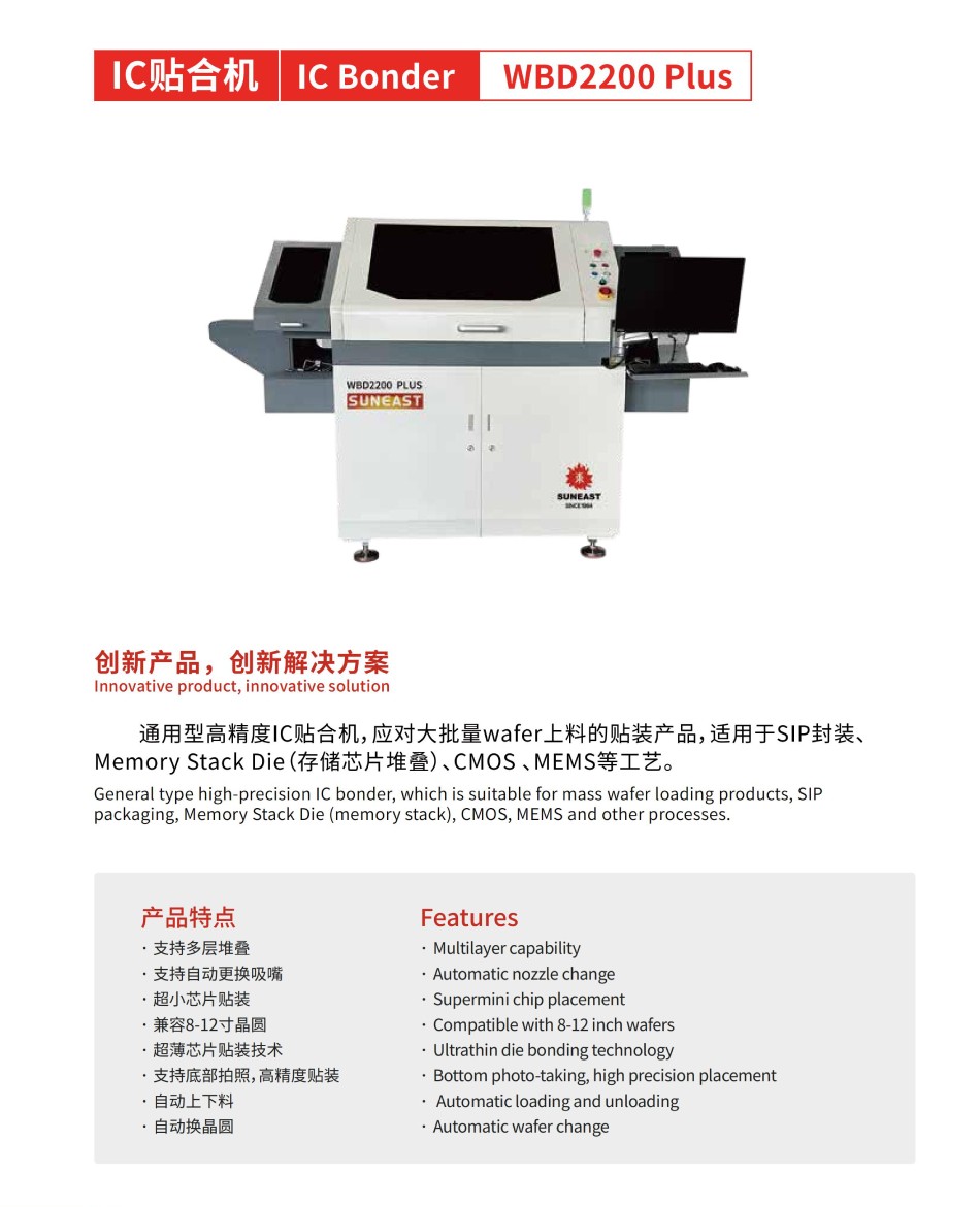 通用型高精度芯片貼合機,應對大批量wafer上料的貼裝產品,適用于SIP封裝、Memory Stack Die(存儲芯片堆疊)、CMOS 、MEMS等工藝。